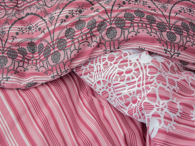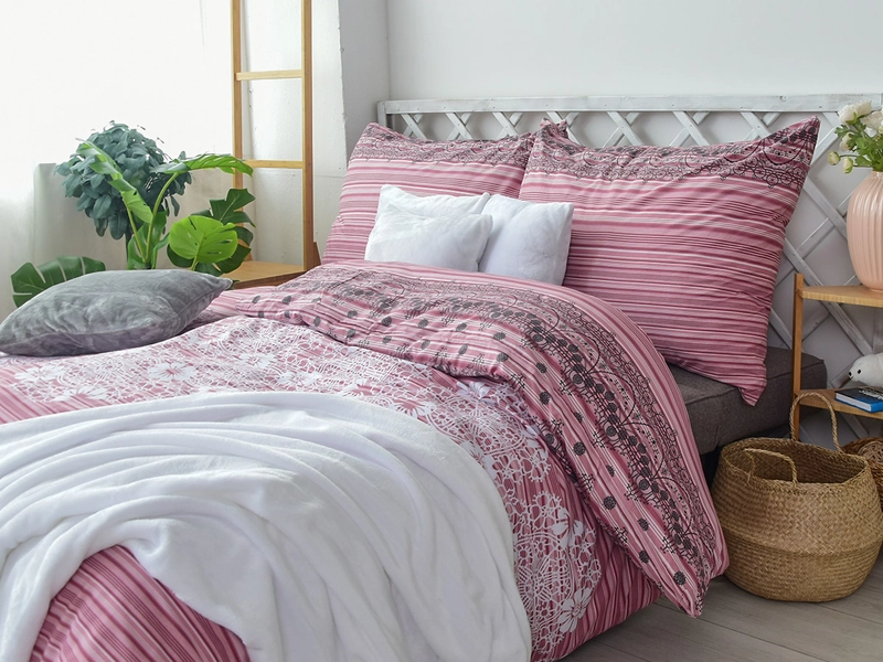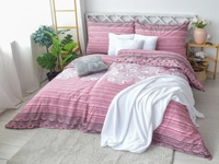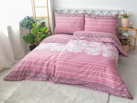 Bavlněné povlečení s potiskem květů PAULINA na decentním proužkovaném podkladu navodí v každé ložnici útulnou atmosféru. Na své si přijdou milovníci růžových - starorůžových odstínů a pohodlného spánku. Každý povlak na polštář je unikátní a nese na sebe jinou část vzoru směrovanou vodorovně. Díky dobrým vlastnostem 100% bavlny Renforcé je povlečení příjemně prodyšné a hebké na omak s vynikající absorpcí vlhkosti. Francouzské povlečení je vhodné pro páry, jež se rádi zachumlají pod velkou dekou. A ve dne nezapomeňte na přehoz na manželskou postel, který vaše lůžkoviny dokonale ochrání.