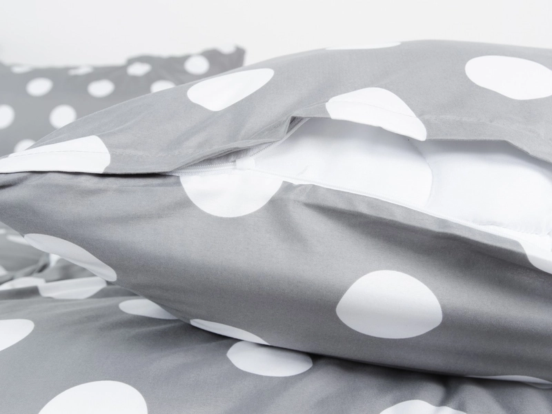 Povlečení SYNDRA je skvělou volbou pro nadšence šedé barvy a puntíků, který dodá vaši ložnici správnou atmosféru a příjemnou energii. Mikrosatén se pyšní několika kladnými vlastnostmi, díky kterým jej stojí za to vyzkoušet. Jeho vlákna jsou extrémně jemná, příjemná na omak a rychle schnou. Mikrosaténové povlečení ma nepatrně lesklý povrch, dobré absorpční vlastnosti a barvy, které odolávají praní.