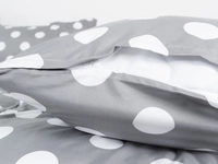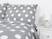 Povlečení SYNDRA je skvělou volbou pro nadšence šedé barvy a puntíků, který dodá vaši ložnici správnou atmosféru a příjemnou energii. Mikrosatén se pyšní několika kladnými vlastnostmi, díky kterým jej stojí za to vyzkoušet. Jeho vlákna jsou extrémně jemnápříjemná na omak a rychle schnou. Mikrosaténové povlečení ma nepatrně lesklý povrch, dobré absorpční vlastnosti a barvy, které odolávají praní.