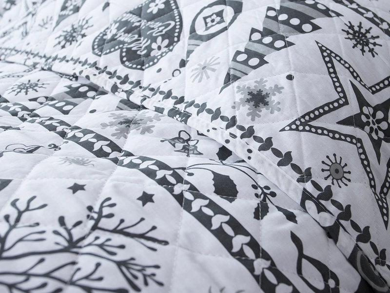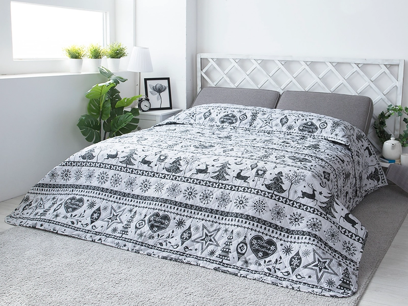 Dokonale zakryje neustlanou postel po ranním vstávání a můžete jej také použít jako další přikrývku, která vás v noci zahřeje. Tandem barev v tmavě šedé a bílé a k tomu sváteční vzor navodí příjemnou atmosféru v každé ložnici. Povrch přehozu je vyroben ze 100% bavlny a je vyplněn dutým vláknem. Rozhodně se vyplatí mít tento trendy přehoz v každé ložnici.
