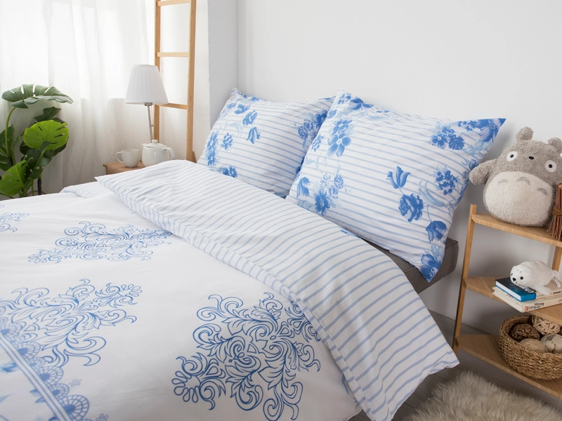 Ozdobte svou ložnici s květinovým vzorem, který přináší toto bavlněné povlečení SIMPLE. Jemná kombinace bílé a modré barvy působí čistě a svěže. Výhodné balení na dvě lůžka doplňuje na dotek hebký materiál ze 100% bavlny, který je vzdušný a dobře absorbuje vlhkost.