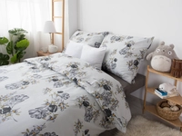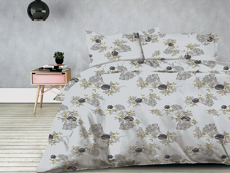 Ozdobte svou ložnici s florálním vzorem, který přináší bavlněné povlečení JUNIA. Harmonie šedých odstínů na světle šedé v podkladu dokonale ozdobí jak světlý, tak i tmavý interiér vaší ložnice a dá vám prostor pro výběr prostěradla v barvě podle nálady. Savý a prodyšný materiál ze 100% bavlny přispěje ke kvalitě spánku.