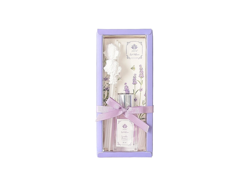 Tyčinkový difuzér a vůně levandule okouzlí s příjemnou atmosférou Provence s tóny fialové, jež navodí harmonii a uvolňující atmosféru i ve vašem interiéru. Osvěžovač vzduchu potěší nejen doma, ale všude tam kde se potřebujete cítit příjemně. Dárková krabička se stužkou obsahuje hranatou lahvičku, 2 ks tyčinek s jílovou dekorací a 4 tyčinky. Potěší nejen vás, ale i jako krásný a voňavý dárek pro vaše blízké.