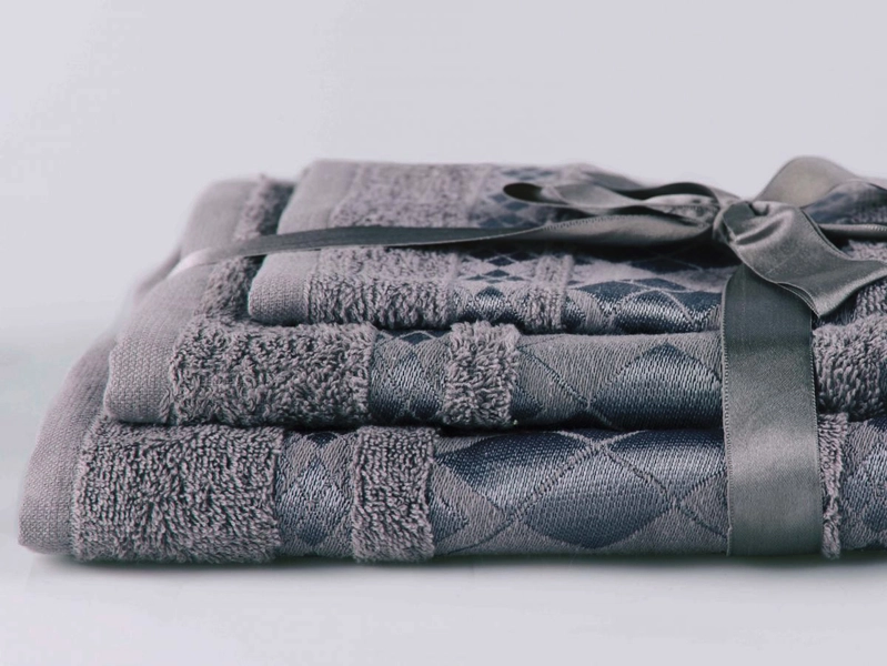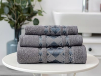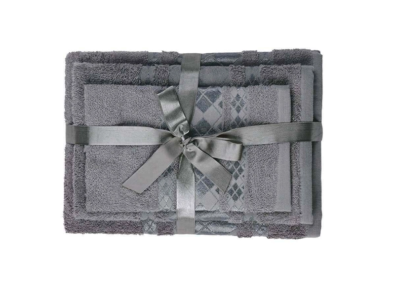 Hledáte praktický, a přitom krásný dárek? V tom případě je dárkový set ručníků správnou volbou. Set tří ručníků je zdoben jemnou bordurou a jako dárek převázaný saténovou stužkou je vhodný i pro známé či rodinu. Příjemný bavlněný materiál v antracitové barvě doladí každou koupelnu a pokožku dokonale osuší.