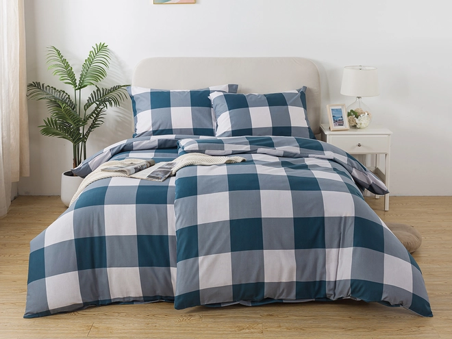 Decentní motiv kára a modré tóny doladí vaší ložnici k dokonalosti. Bavlněné povlečení a gradující barvy čtverců hravě doladíte s naší nabídkou mikroplyšových dek i povlaků. Díky hebkému a prodyšnému materiálu ze 100% bavlny ložní prádlo splňuje všechny předpoklady k dobrému spánku. Oceníte prodloužené povlečení i praktické zapínání na knoflíky, které skvěle pasuje na naši nabídku v sekci lůžkoviny.