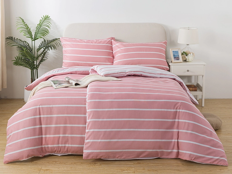 Prodloužené povlečení a efektní vzor pruhů vnese do každé ložnice moderní styl. Na své si přijdou milovníci pravidelných linií a provedení dua barev, které růžové povlečení a z druhé strany bílé povlečení nabízí. Změnu podkladu získáte pouhým o točením přikrývky. Povlečení 140x220 doplňuje na dotek hebký materiál ze 100% bavlny, který je vzdušný a dobře absorbuje vlhkost. Povlečení v prodloužené délce skvěle padne na rozměr přikrývky 140x220 a polštář 70x90.