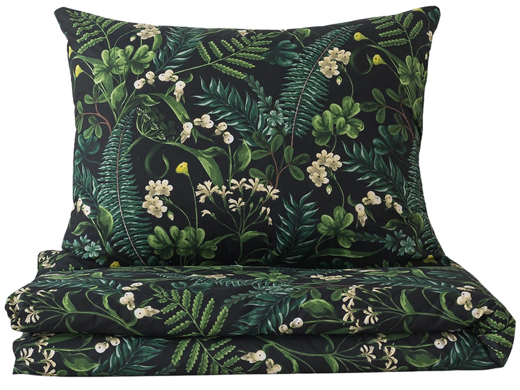 Objevte klid a kouzlo přírody s povlečením LESNÍ NOC, které vás přenese do tichého lesa plného zeleně. Jemný motiv listů a bílých květů v decentních odstínech tmavě zelené na černém podkladu vnese do vaší ložnice harmonii a klidnou atmosféru. Luxusní povlečení z kvalitní 100% bavlny Renforcé vyniká svojí jemností, pevností a přirozenou hebkostí. Materiál je příjemný na dotek a zároveň odolný vůči opotřebení i častému praní. Povrch látky povlečení je dokonale hladký a zaručuje pohodlí po celou noc. Set povlečení 140x220 + 70x90 cm má zapínání na knoflíky a pasuje na klasické jednolůžko.