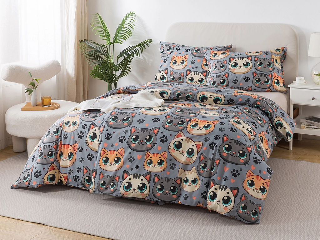 Prodloužené povlečení se vzorem kočiček pro klidný spánek v bavlně