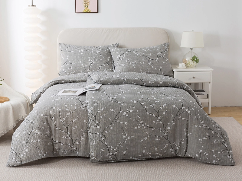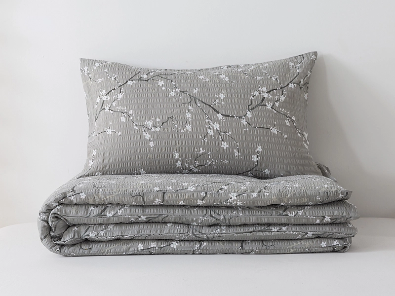 Krepové povlečení šedé, prodloužená délka 140x220 a vzor květů sakury promění vaši ložnici v rozkvetlou zahradu a vaše pohodlí posune na vyšší úroveň. Šedý podklad dává krásně vyniknout květům a vy se tak v místnosti budete cítit pozitivně a uvolněně každé ráno. Materiál z bavlny s úpravou krepu řadí ložní prádlo mezi nežehlivé povlečení, které šetří váš čas. Navíc vlákna bavlny upravené do zvrásněné struktury povrchu nabízí vysokou savost a vzdušnost, co přispěje ke kvalitě vašeho spánku.