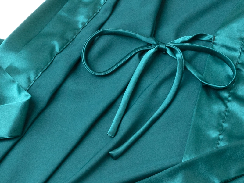 Dámský saténový župan okouzlí luxusním vzhledem v barvě petrolejové a pohladí hedvábnou jemností. Elegantní vzhled, lehký materiál a praktický střih tříčtvrtečních rukávů nabízí vše pro dokonalou pohodu i romantickou atmosféru. Saténové kimono jednoduše zavážete dvojím vázáním a můžete si vychutnat svou oblíbenou kávu na terase. Stačí si jen vybrat z pestré nabídky barev.