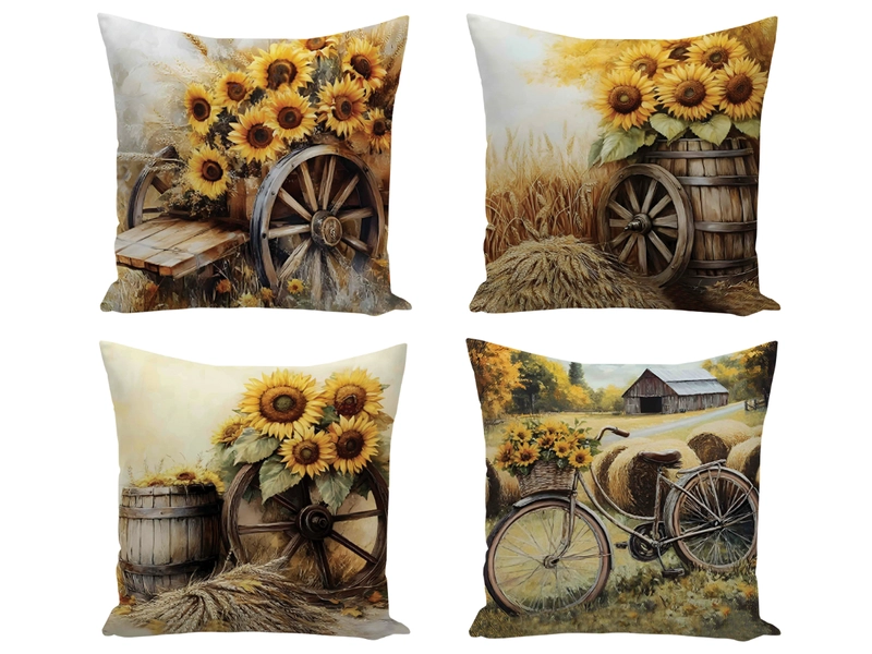 Povlaky na polštářky a vzor slunečnice pro romantický interiér