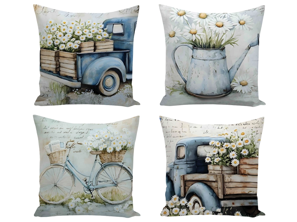 Povlaky na polštářky a vzor kopretin pro vintage interiér