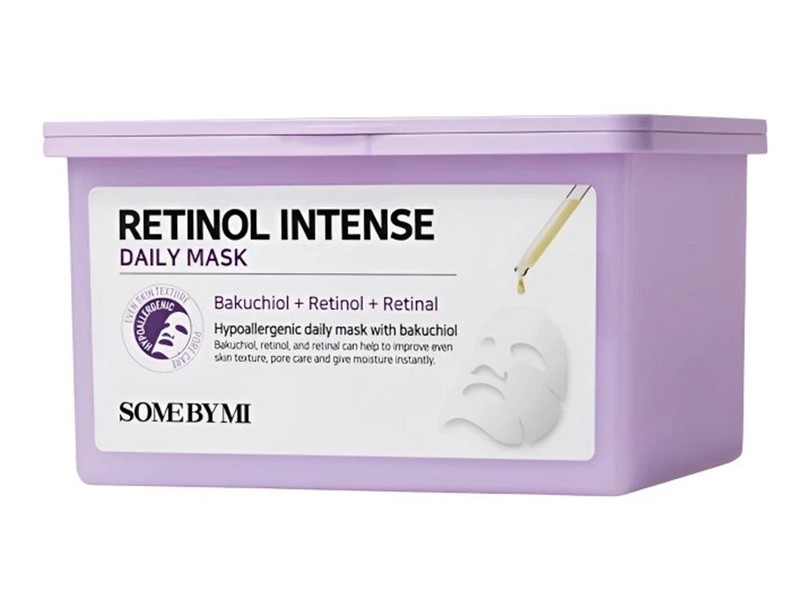 Maska SOME BY MI Retinol Daily Sheet Mask je navržená pro každodenní péči o unavenou, povadlou pleť se známkami prvních vrásek. Obsahuje duo složek retinolu, retinalu a bakuchiolu pro spolehlivou péči bez podráždění. Pleťová maska příznivě působí na redukci a zmenšení pórů, zlepšení textury pleti a posílení hydratace. Navrací pleti vitalitu a svěžest, kdy po opakované aplikaci získáte vyhlazení a omlazení pleti.