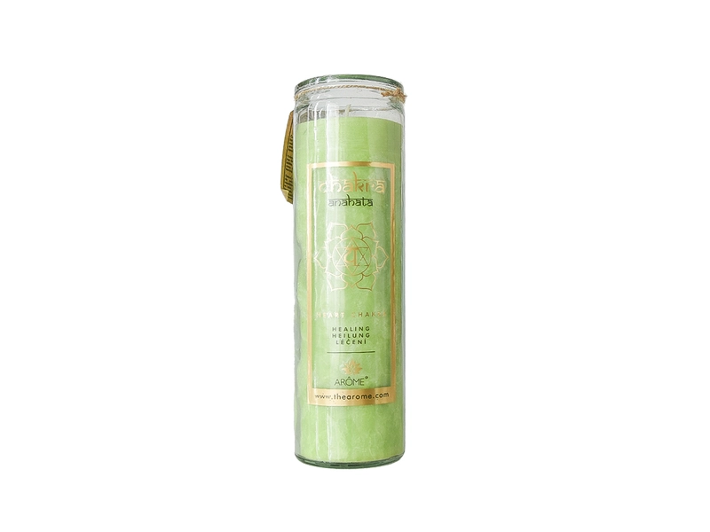 Vysoká svíce Chakra a zelený parafín je symbolem léčení a obnovy. Nádherně provoní váš domov s vůní jasmínu a podpoří radost ze života i kreativní energii. Harmonická vůně vám po zapálení chakra svíčky zpříjemní až 100 hodin.