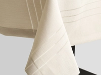Ubrusy na stůl dokážou s jednobarevným béžovým provedením a decentním proužkem dodat šmrnc i eleganci v kuchyni či jídelně. Nejenže ubrus 140x180 přispějí k stylovému stolování, ale účinně ochrání povrch stolu proti poškrábání. Ubrus je vyroben z teflonového materiálu, který snadno vyperete, rychle vysušíte a je opět nachystaný zkrášlit vaši domácnost. Ubrusy jsou barevné z obou stran, kraje mají s přehybem pečlivě obšité po celém obvodu.