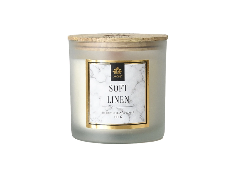 Naplňte váš domov příjemnou vůní čistě vypraného prádla, kterou evokuje tato vonná svíčka SOFT LINEN 400 g. Arôme svíčka s dřevěným knotem vám dopřeje jemné praskání dřeva, širší plamen s intenzivnější vůni plné svěžesti a čistoty co navodí skvělou náladu a rozproudí pozitivní energii. Vonný obsah svíčky je vyroben ze 100 % přírodního sójového vosku. Svíčky ve skle s dřevěným víčkem dokonale udrží vonné esence i při opakovaném použití, kdy si hřejivou atmosféru můžete užívat až po dobu hoření 100 hodin. Vonná svíčka z přírodních materiálů je ideální dárek pro vaše milované.