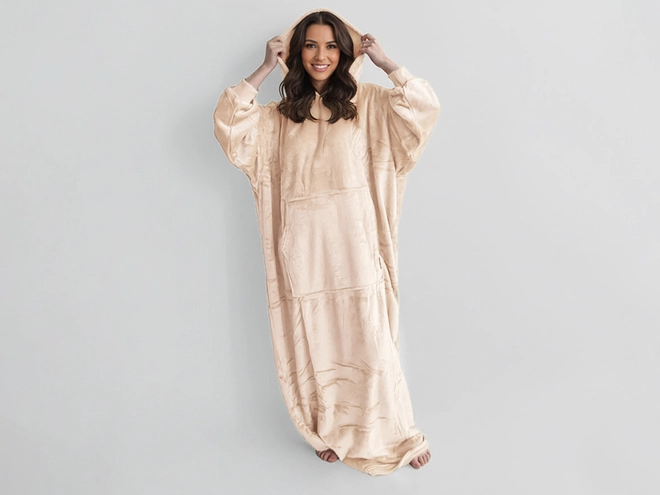 Mikinová deka (prodloužená) - bílá káva